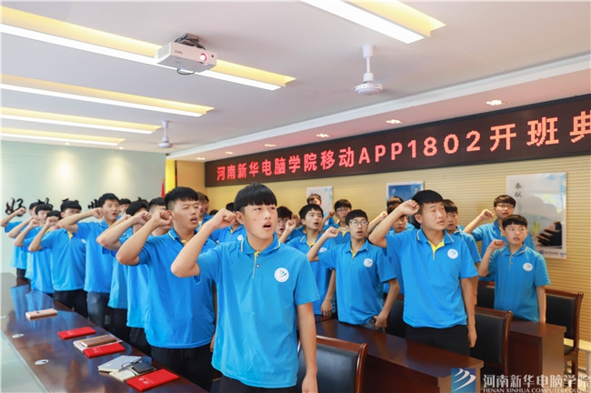 綻放青春,讓夢想揚(yáng)帆起航。在這個(gè)熱情奔放的的季節(jié),我們迎來了一批批朝氣蓬勃、意氣風(fēng)發(fā)的新華學(xué)子。近日,移動(dòng)APP軟件開發(fā)專業(yè)1802班開班典禮舉行,學(xué)院助理、學(xué)生處主任、教務(wù)處主任等領(lǐng)導(dǎo)出席了儀式。